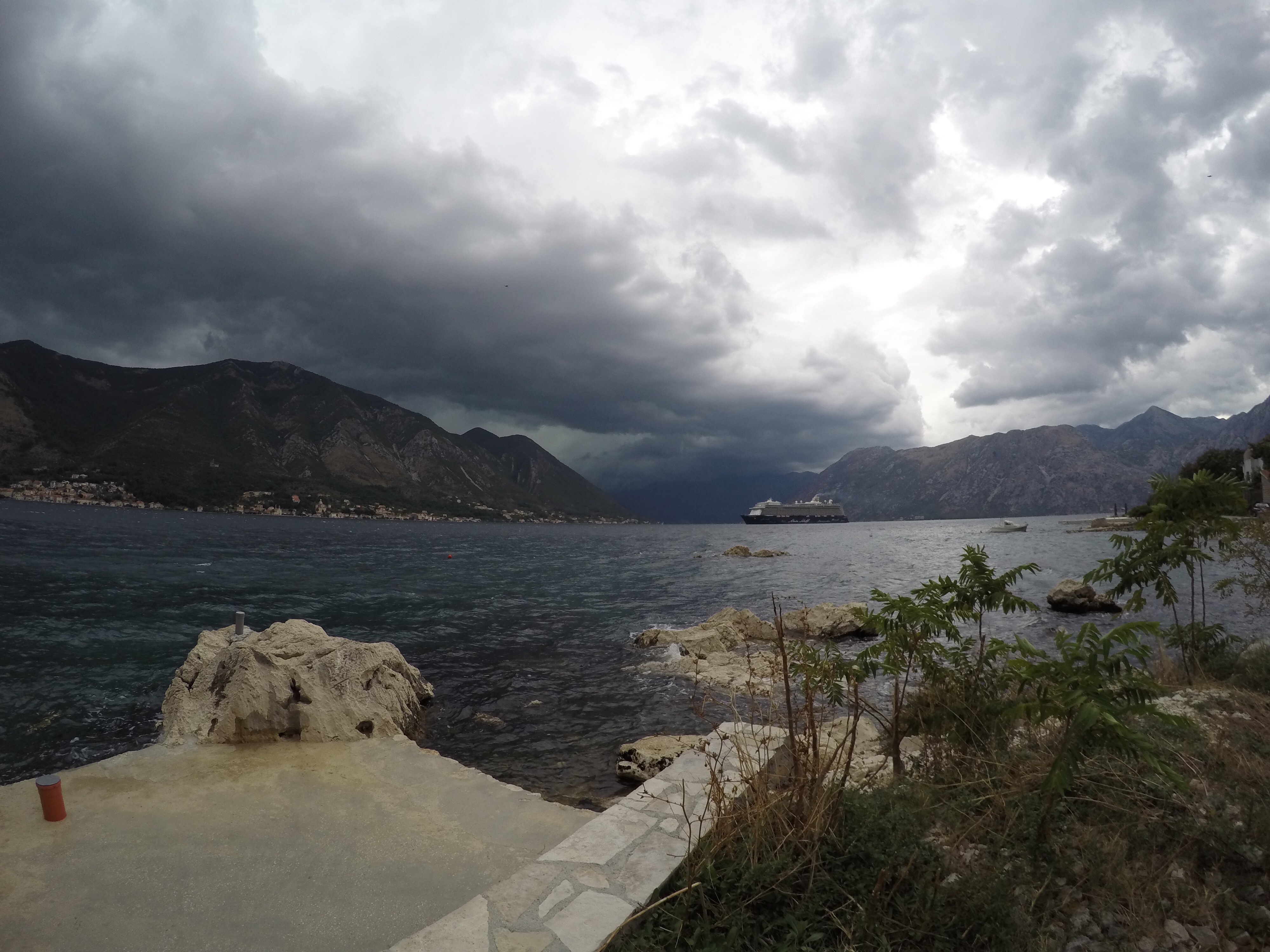 I went further cycling and checking the city. According to weather forecast, it was suppose to be a thunderstorm today at 4. I was around 7-8 kms away from Kotor at that time. Weather started to change at time and I decided to capture thunderstorm. I was a good and bad idea at the same time. Good idea because I captured some nice footage. Bad idea because I got stuck in thunderstorm. I ended up taking shelter in garden of a house where a Russian couple was staying. He didn’t speak English so we didn’t had meaningful conversation. One picture of thunderstorm